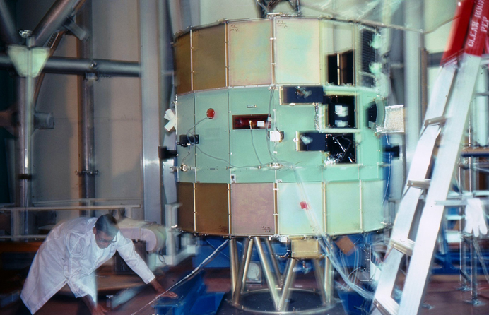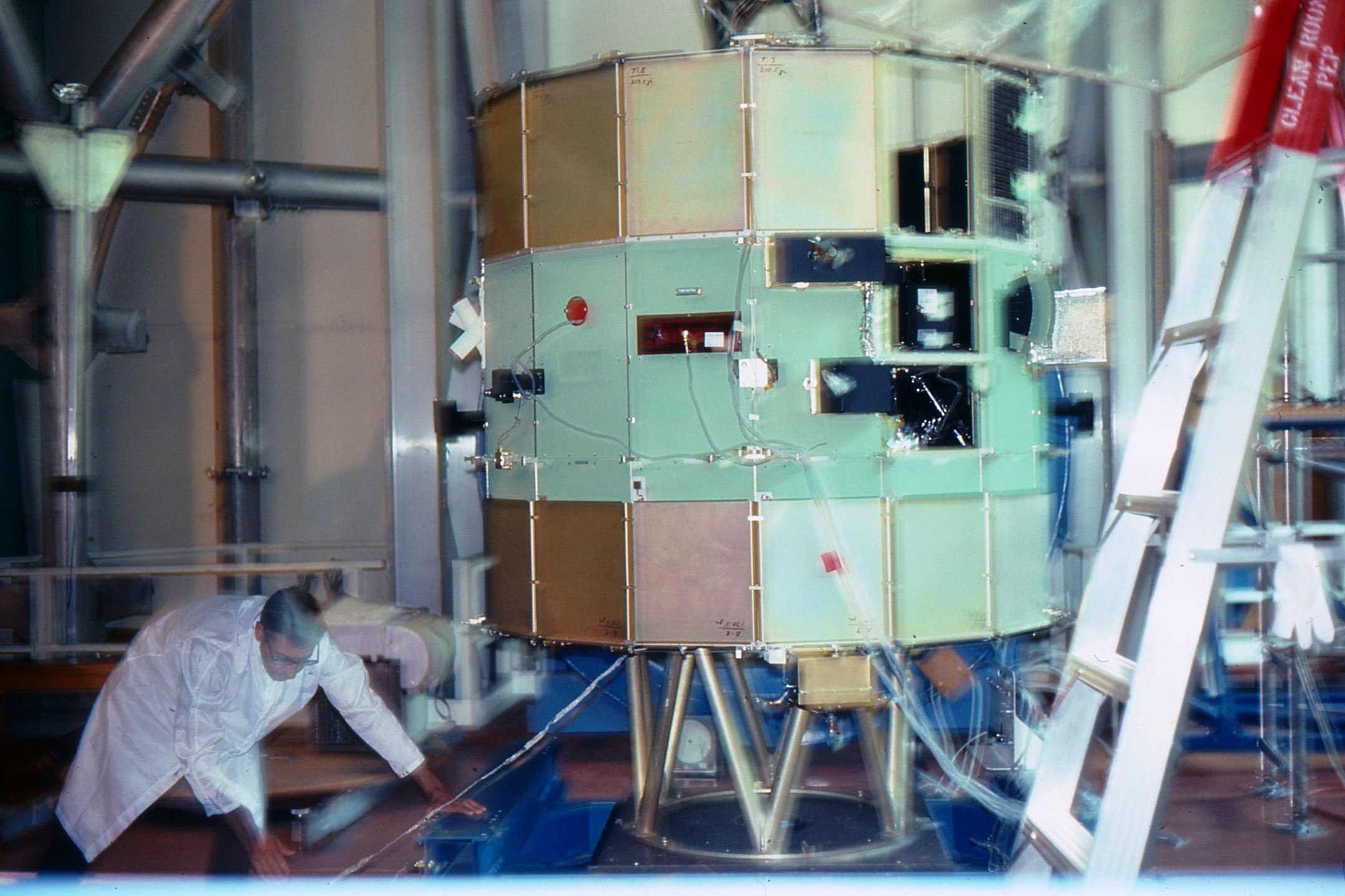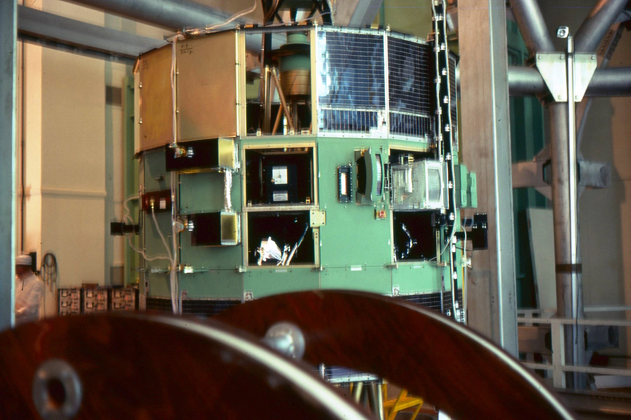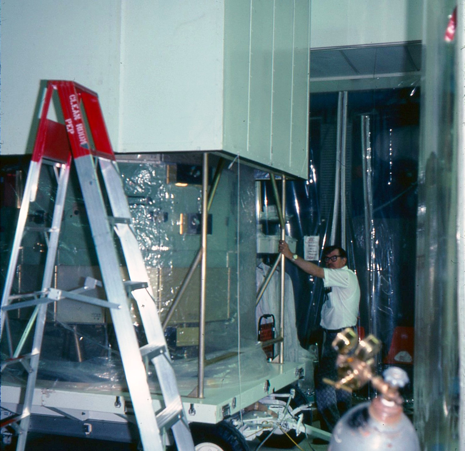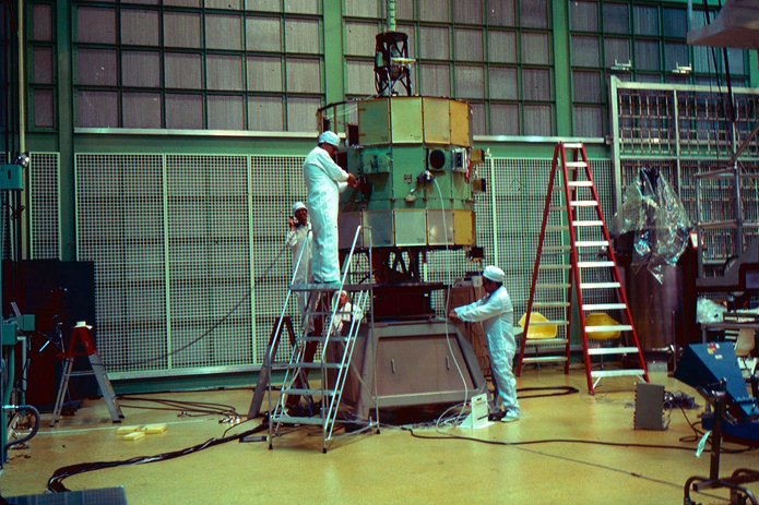 These images were provided by Todd Kramer. His father, Richard Kramer, worked on the ISEE-3 project and took these pictures. These photos show the final assembly and testing at NASA GSFC in May 1978 after ISEE-3 was moved there from the Fairchild facility in Germantown, MD. We'll be posting more photos from Todd that show the spacecraft being transported to KSC, prepared for launch, and then launched. All photos are copyright Todd Kramer. Click on image to enlarge.
